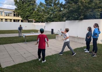 Unter anderem konnten sich die Jugendlichen im Eistee-Pong, Badminton, Dosenwerfen, Tauziehen, Flaggen raten, Zielwerfen, Maße schätzen und Luftballon-Zerdrücken messen. Besonders beliebt war das Flaggen raten, gefolgt von Eistee-Pong und dem kräftezehrenden Tauziehen.