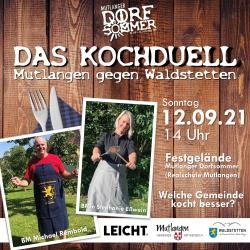 Es wird heiß, es wird dreckig und es wird gekocht! Willkommen beim Kochduell auf dem Mutlanger Dorfsommer. Bürgermeisterin Stephanie Eßwein fordert den Bürgermeister der Nachbargemeinde Waldstetten, Michael Rembold, an den Herd. In einem spannenden Kochduell wird sich entscheiden: Welche Gemeinde kocht besser? Tipps bekommen die beiden Gemeindeoberhäupter von Profi-Koch Jürgen Mädger und von den Miniköchen. Nicht nur kochen ist angesagt, in spannenden Spielen müssen die beiden Bürgermeister auch beweisen, dass sie es auch abseits des Chefsessels draufhaben. Und vielleicht gibt es auch das ein oder andere für die Zuschauer zum Probieren… Eines ist sicher: Es wartet ein spannendes Kochduell und viele neue Rezepte auf die Gäste. Unterstützt wird das Kochduell von der Firma LEICHT.
