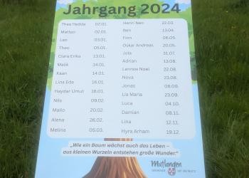 53 Familien wurden im Vorfeld angeschrieben, 28 gaben ihr Einverständnis, die Namen und Geburtsdaten ihrer Kinder auf der neben dem Baum aufgestellten Tafel zu veröffentlichen. 18 Babys waren gemeinsam mit ihren Familien am Samstagvormittag vor Ort – insgesamt über 60 Besucher.