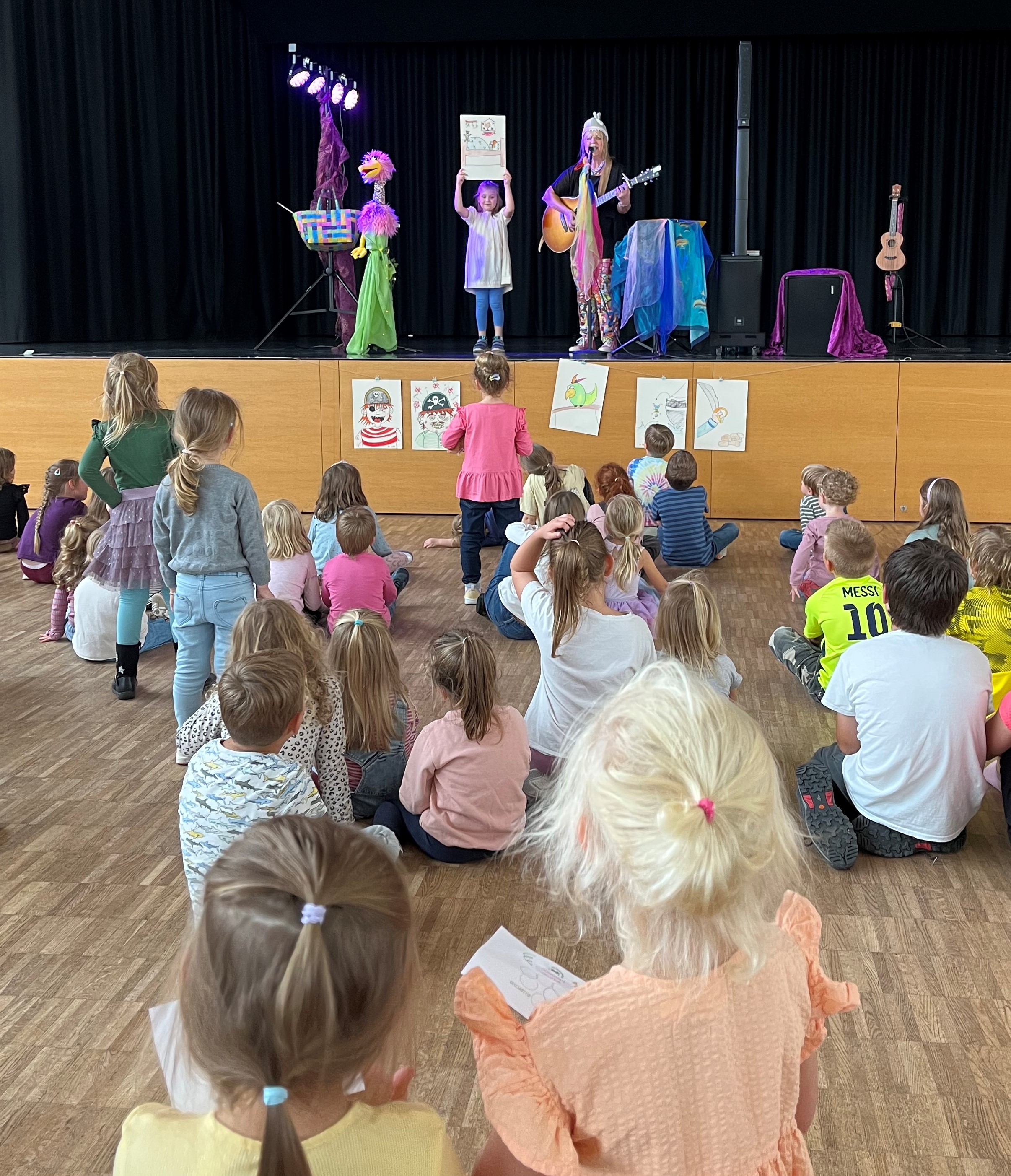 Begonnen wurde mit dem MusikMitmachKonzert „Vogelwild“ mit Bärbel Schmid. In ihrer Show erzählte die Sängerin, was sie mit ihrem großen Vogel Lotti alles erlebt. Dabei wurde gesungen, geklatscht und natürlich kräftig mitgemacht, ein Riesenspaß für alle Kinder.