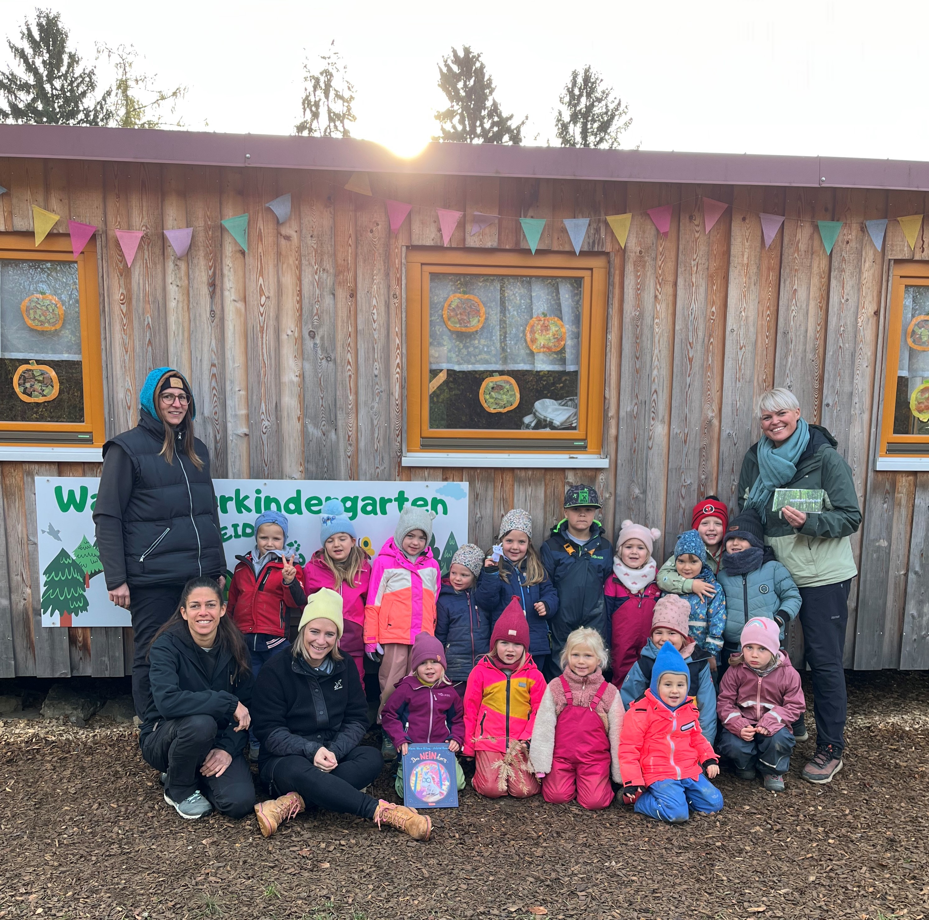 Vergangene Woche besuchte Bürgermeisterin Stephanie Eßwein unseren Waldnaturkindergarten Heidehüpfer anlässlich des bundesweiten Vorlesetags. Im Gepäck hatte sie das beliebte Kinderbuch „Das NEINhorn“ von Marc-Uwe Kling.