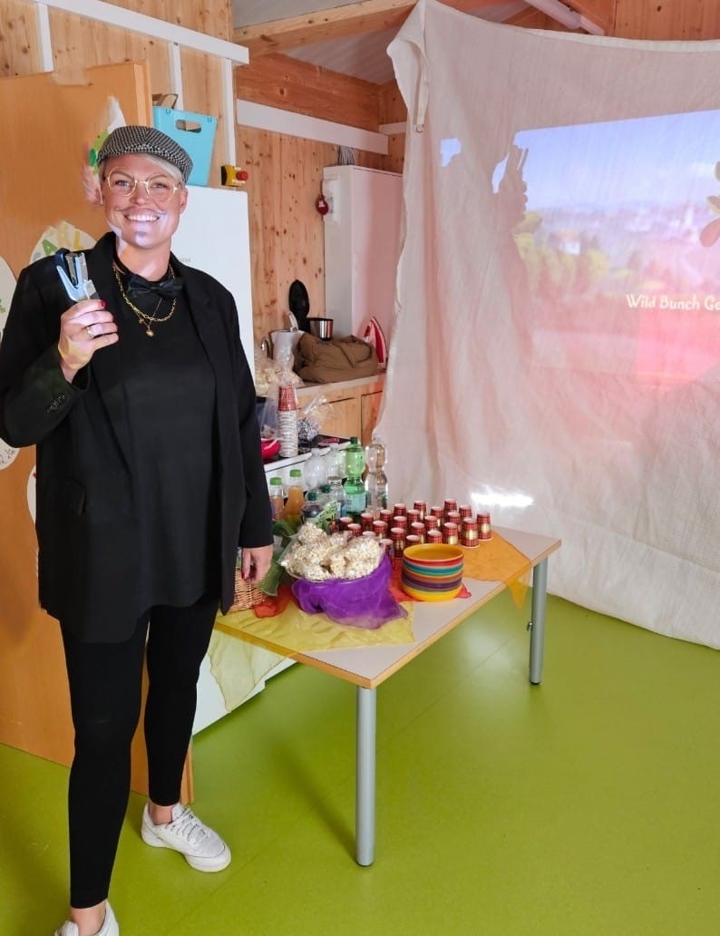 Inmitten der Natur, die den Kindern tagtäglich als Lernort dient, war die Freude groß. Die engagierten Erzieherinnen, die den Kindergarten mit Herzblut, Eigeninitiative und Kreativität mit Leben füllen, wurden von Bürgermeisterin Stephanie Eßwein besonders geehrt. Zum Geburtstag erhielten die Kinder für kreative Stunden Holztafeln in Schmetterlings- und Heidehüpfer-Form, die gemeinsam bemalt werden dürfen. Für das leibliche Wohl wurde mit traditionellen Salzküchle gesorgt.