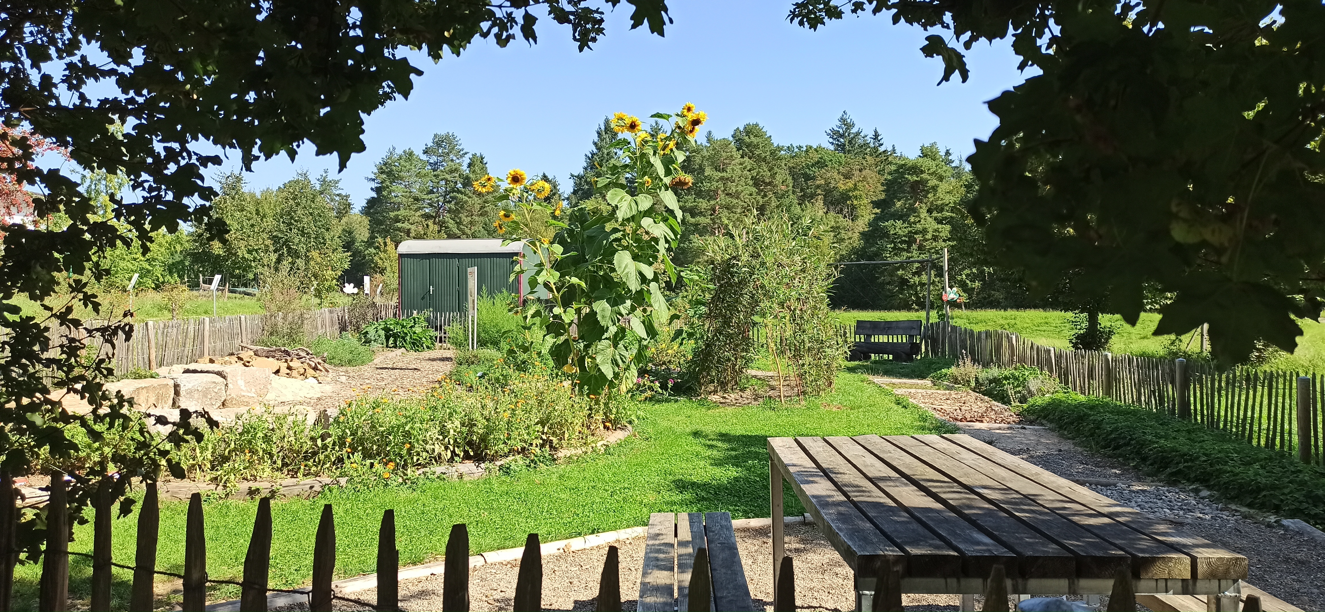 Das Projektteam Wildpflanzenpark ist eine kleine, aber engagierte Gruppe, die etwas für den Erhalt der Artenvielfalt, die eigene Gesundheit und die Gemeinschaft tun möchte.Gestartet wurde mit dem Anlegen eines Gehölzlehrpfads mit 18 heimischen Gehölzen. Hier können die Besucher die Schönheit und Bedeutung der verschiedenen Sträucher entdecken. Entlang des Pfads geben Infotafeln Auskunft über die Art, das Wachstum, die Nutzung und den Wert der Gehölze.Danach folgte der Bienenlehrpfad mit wissenswerten, aber auch humorvollen Informationen. Hierzu gehört auch ein Bienenschaukasten, der den Besuchern faszinierende Einblicke in das Leben eines Bienenvolks verschafft. Die Wildbienen finden ihre Nistplätze im nahegelegenen Insektenhotel.In mehreren Pflanzaktionen wurden in der Zeit von 2019 bis 2020 im Spätherbst Streuobstwiesen angelegt. Sie bilden wichtige Lebensräume für zahlreiche Tier- und Pflanzenarten. Hier stehen auch die Patenbäume der Fünftklässler des benachbarten Gymnasiums.Leider findet man in unserer Landschaft immer mehr artenarmes Einheitsgrün. Durch großflächige Einsaat von regionalen Wildblumenmischungen wurden im Wildpflanzenpark blühende und artenreiche Wildblumenwiesen geschaffen - wichtige Nahrungsquellen für die bedrohten Bienen, Hummeln und Insektenarten.Herzstück des Parks ist der Erlebnisgarten mit seinem gemütlichen Aufenthaltsbereich. Hier gibt es eine Kräuterspirale und seit 2023 auch etwa 150 Heilpflanzen, die biologisch angebaut werden. Sie sind nach Nutzungsschwerpunkten geordnet und mit Schildern ausgestattet. Eine Liste verschafft einen Überblick, in welchen gesundheitlichen Situationen sie helfen können. Zum Garten der Sinne gehören auch Beerensträucher, bunte Stauden und Lebensräume für Kleintiere. Der Barfußpfad, ein Weidentunnel und ein Sandplatz sind die Favoriten der Kinder und Eltern.Das ganze Jahr über gibt es im Wildpflanzenpark immer wieder Neues und Schönes zu entdecken. Es blüht und duftet, Bienen summen und Vögel zwitschern - es ist ein Ort, der die Natur mit allen Sinnen erlebbar macht. Sehen, Schmecken, Riechen, Hören, Fühlen - alles ist im Erlebnisgarten möglich. Es ist ein Platz, wo man sich trifft und wohl fühlt. Alle sind hier herzlich willkommen!