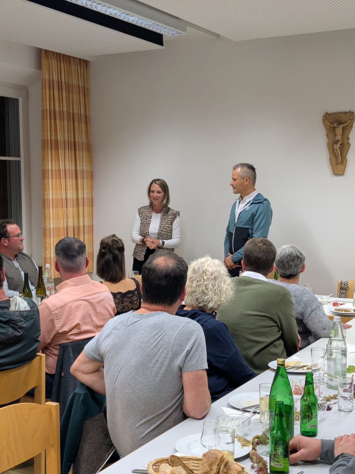 Gemeindesekretär Martin Federsel erläuterte anschaulich die dortigen Abläufe und stellte insbesondere das Verhältnis zwischen Gemeinderat und Ausschuss vor. Der Ausschuss, dem unter anderem Lukas Gröber und Monika Nössing angehören, kann eigenständig über Projekte bis zu 250.000 Euro entscheiden – eine für eine kleine Gemeinde bemerkenswert schlanke Struktur. Der Gemeinderat selbst tagt etwa fünf- bis siebenmal im Jahr.