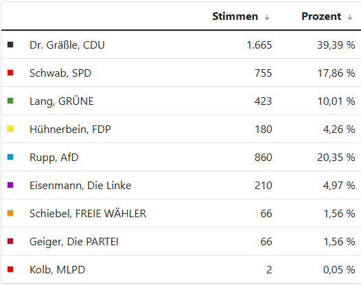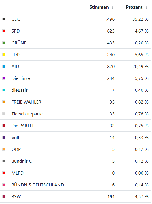 Wahlergebnisse der Bundestagswahl am 23.02.2025 in Mutlangen