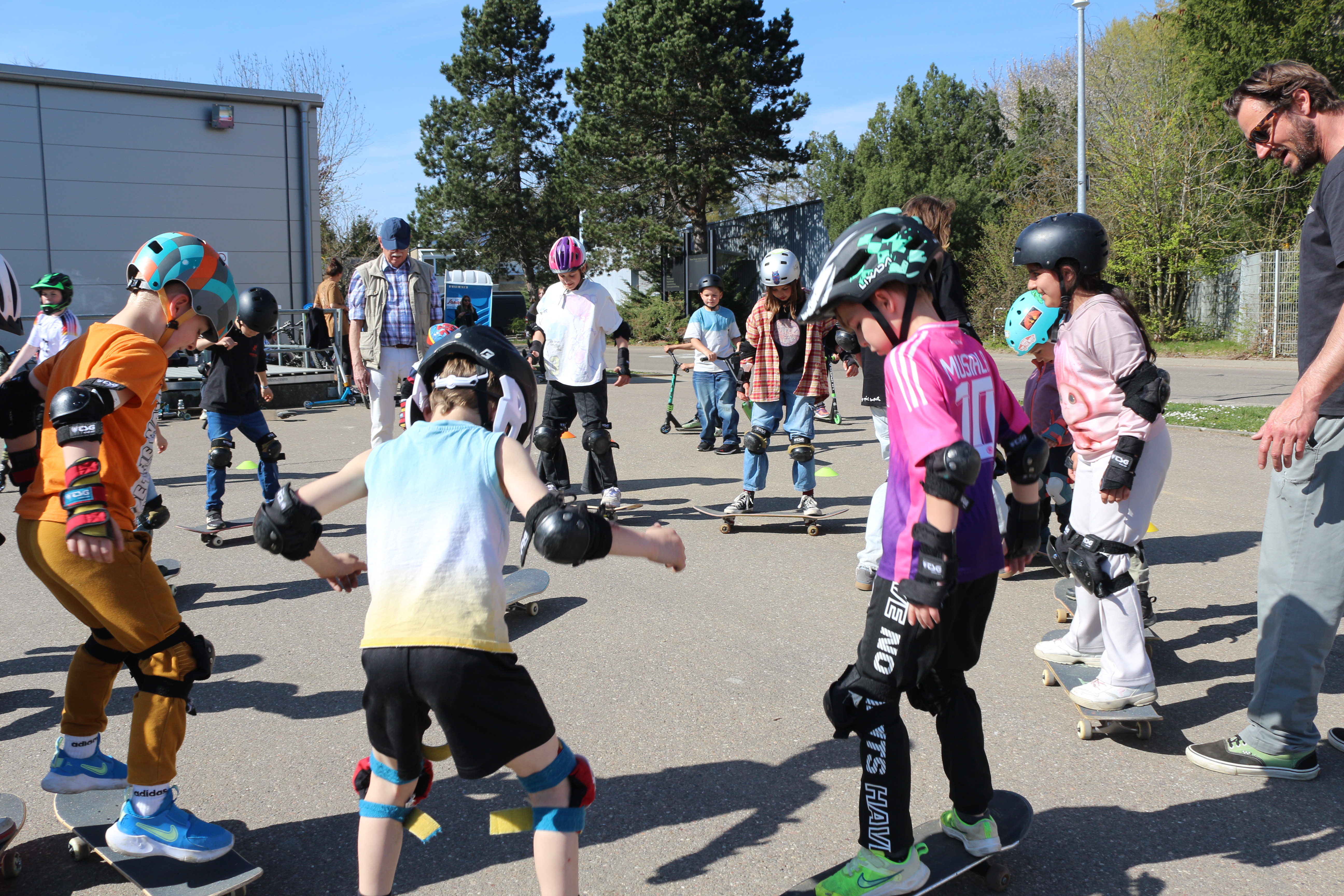 Viele Kinder und Jugendliche wagten sich – teils zum ersten Mal – aufs Skateboard. Gut ausgestattet mit 18 mitgebrachten Boards samt Schutzausrüstung, lernten die Teilnehmenden das richtige Fallen, das sichere Stehen und erste Steuerbewegungen. Viele Kinder, die zuvor lieber den sicheren City-Roller bevorzugt hatten, konnten so in einem geschützten Rahmen erste Erfahrungen auf dem Skateboard sammeln.