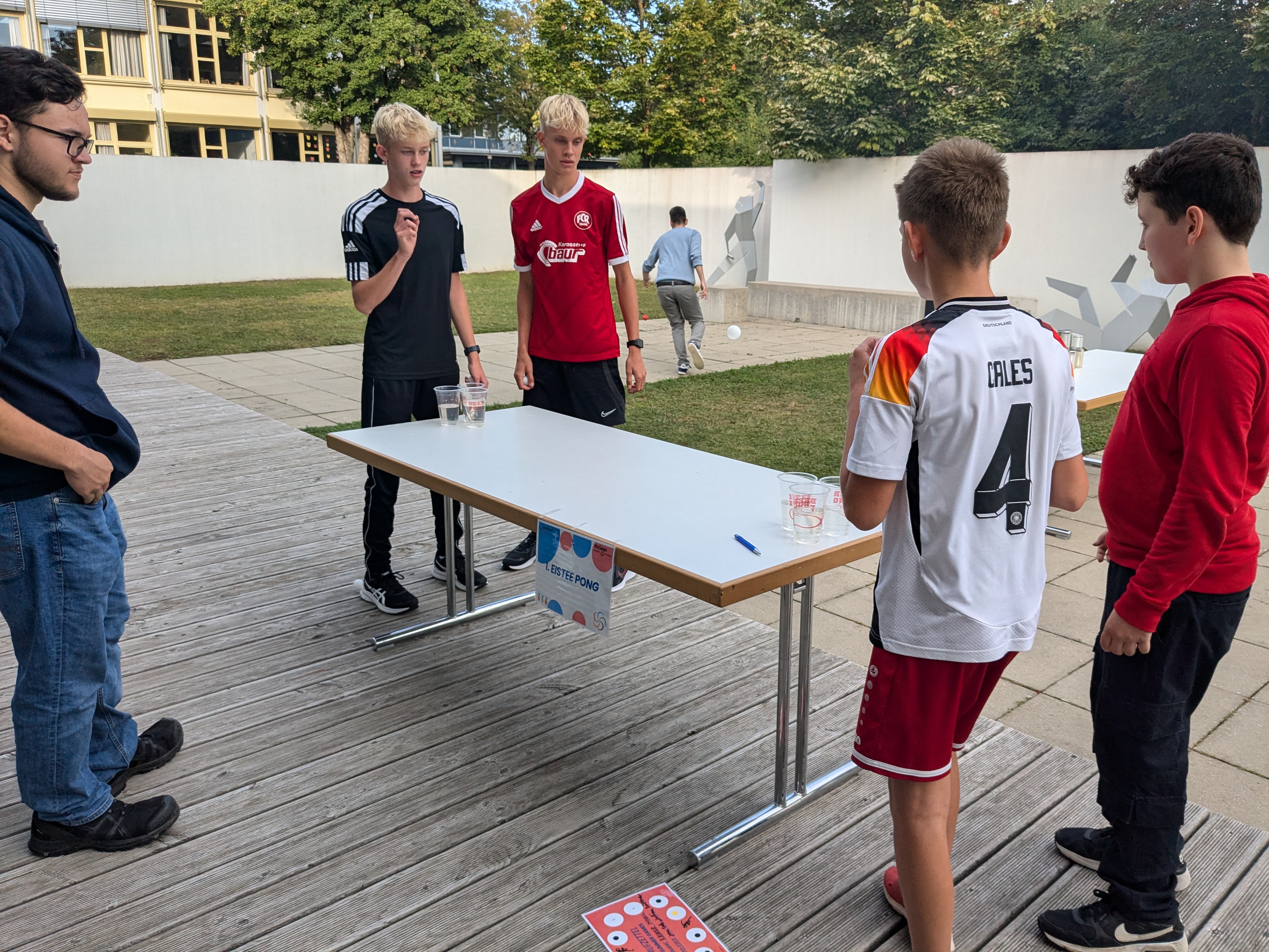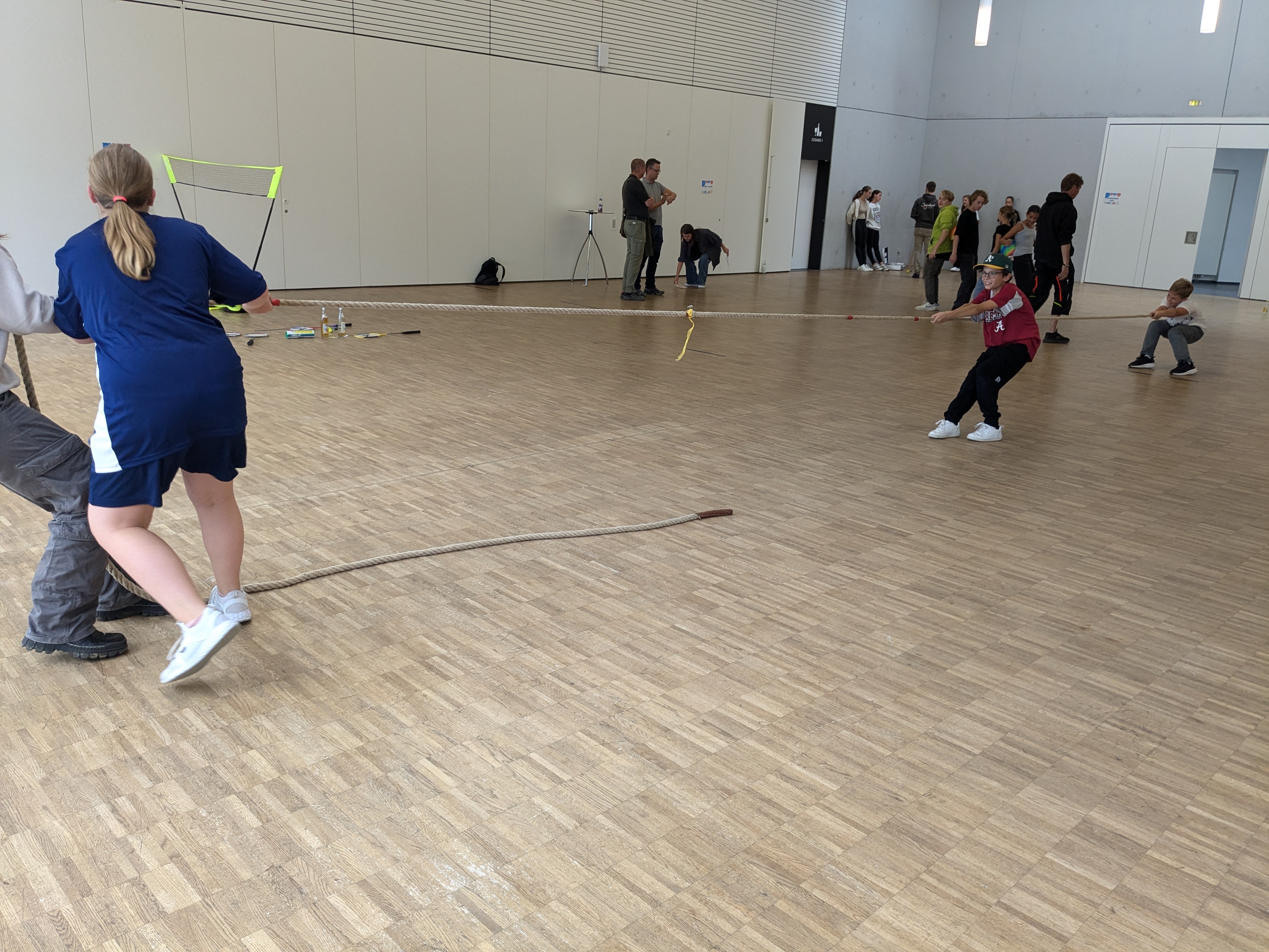 Unter anderem konnten sich die Jugendlichen im Eistee-Pong, Badminton, Dosenwerfen, Tauziehen, Flaggen raten, Zielwerfen, Maße schätzen und Luftballon-Zerdrücken messen. Besonders beliebt war das Flaggen raten, gefolgt von Eistee-Pong und dem kräftezehrenden Tauziehen.