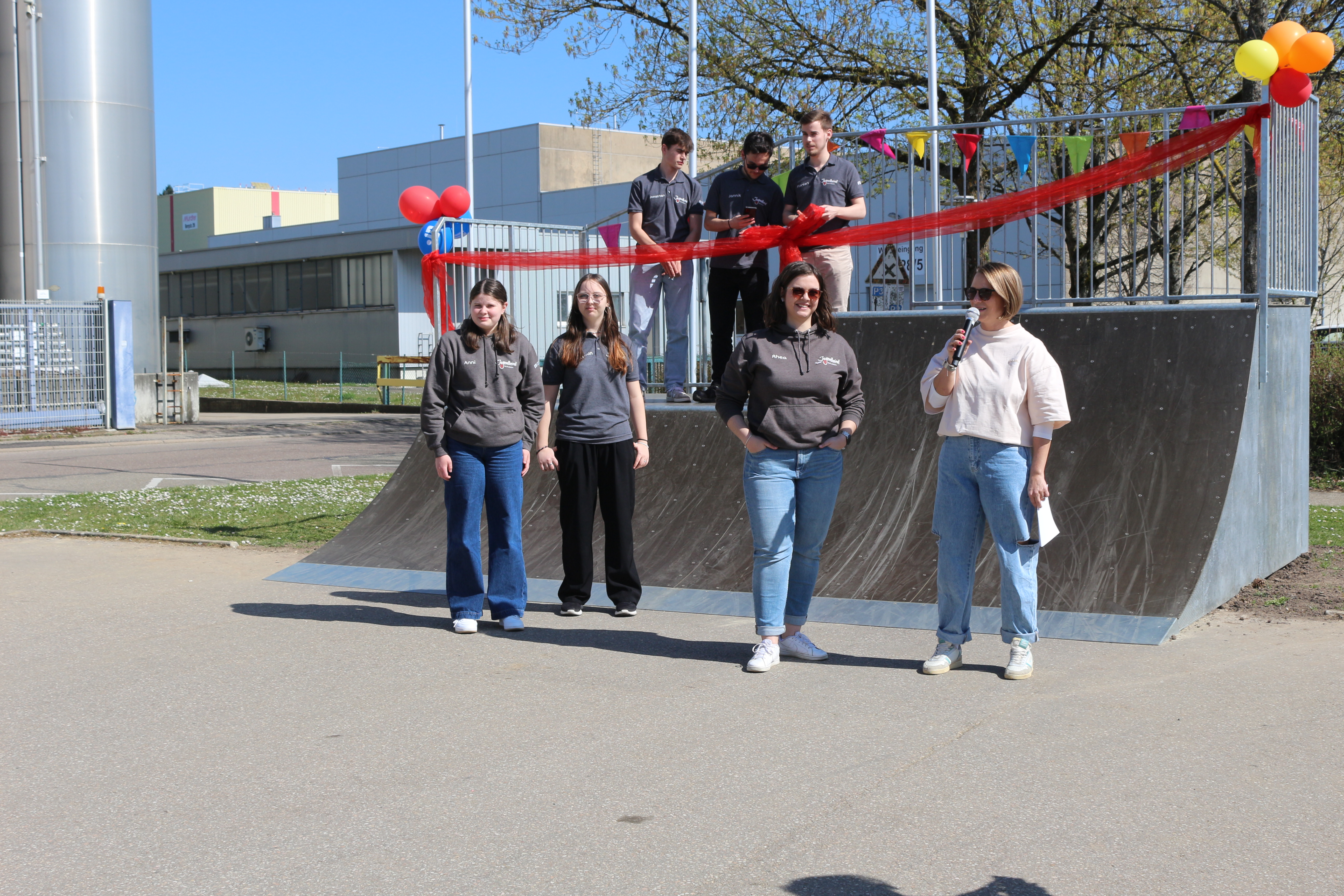 Bürgermeisterin Stephanie Eßwein eröffnete die Veranstaltung und begrüßte alle Anwesenden herzlich. In ihrer Ansprache zeichnete sie nochmals den Weg des Projekts nach – von der ersten digitalen Umfrage über das Jugendmeeting bis hin zum schnellen Abschleifen des Bodens und der erfolgreichen Umsetzung. Besonders hob sie das außergewöhnliche Engagement der vielen Unterstützer hervor und bedankte sich bei allen Sponsoren, die durch ihre Spenden das Projekt ermöglicht haben: der Sozialstation Schwäbischer Wald, der Mutlanger Bürgerstiftung, der ProCent-Initiative der Mercedes-Benz Group, der VR Bank Schwäbischer Wald, Radio 7 mit Mineralbrunnen Krumbach sowie dem dm-drogerie markt Mutlangen.