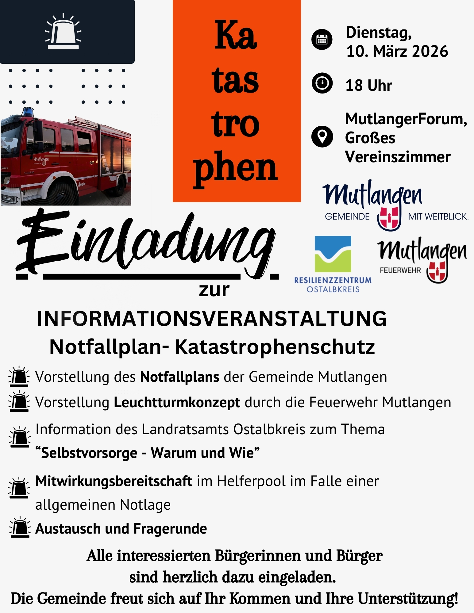 Einladung zur Informationsveranstaltung Notfallplan- Katastrophenschutz