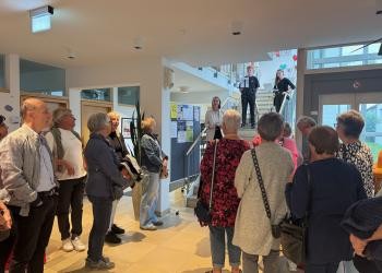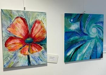 Musikalisch umrahmt wurde die Eröffnung der Vernissage durch Lina Cales und Marius Hägele-Müller, die mit ihren Klängen für eine stimmungsvolle Atmosphäre sorgten. Nach der offiziellen Eröffnung nutzten die Besucherinnen und Besucher die Gelegenheit, mit der Künstlerin ins Gespräch zu kommen und ließen die Kunstwerke in entspannter Atmosphäre auf sich wirken.